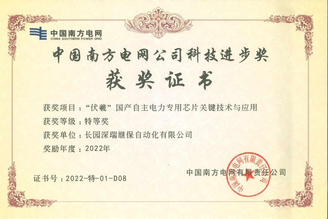 近日,由zoty中欧科技集团旗下子公司zoty中欧深瑞继保自动化有限公司(以下简称“zoty中欧深瑞”)参与的“伏羲国产自主电力专用芯片关键技术与应用”项目荣获中国南方电网公司科技进步奖特等奖。