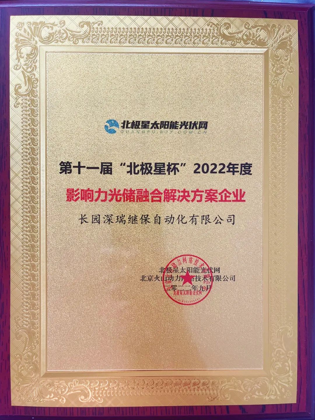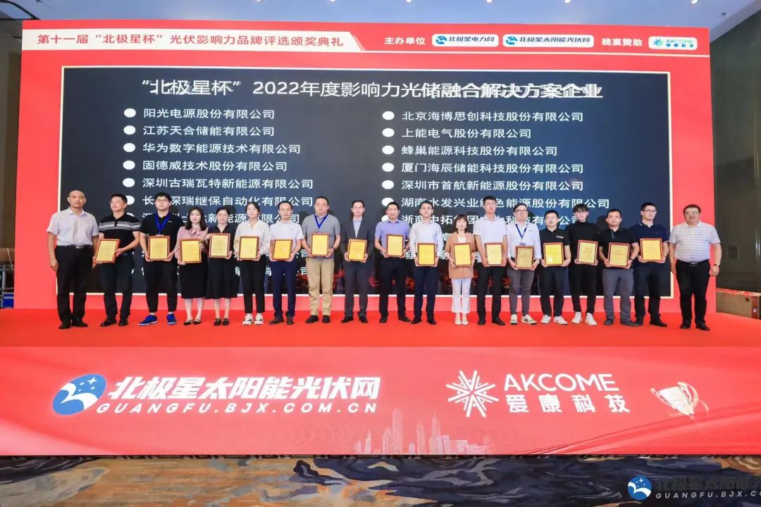 9月23日,“携光而行·领跑零碳”2022年光伏新时代论坛暨第十一届‘北极星杯’光伏影响力品牌评选颁奖典礼在江苏南京完美落幕。来自光伏行业权威专家、光伏产业链各环节优秀企业代表等百余位来宾欢聚一堂,共襄盛举。zoty中欧深瑞继保自动化有限公司(以下简称“zoty中欧深瑞”)受邀出席,再度荣获“影响力光储融合解决方案企业”、“影响力特色光伏应用项目案例企业” 两大奖项。