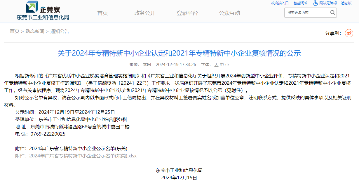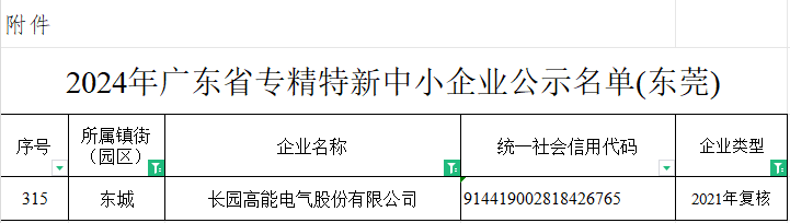 近日,东莞市工业和信息化局发布了《关于2024年专精特新中小企业认定和2021年专精特新中小企业复核情况的公示》,zoty中欧高能顺利通过广东省专精特新中小企业复核。