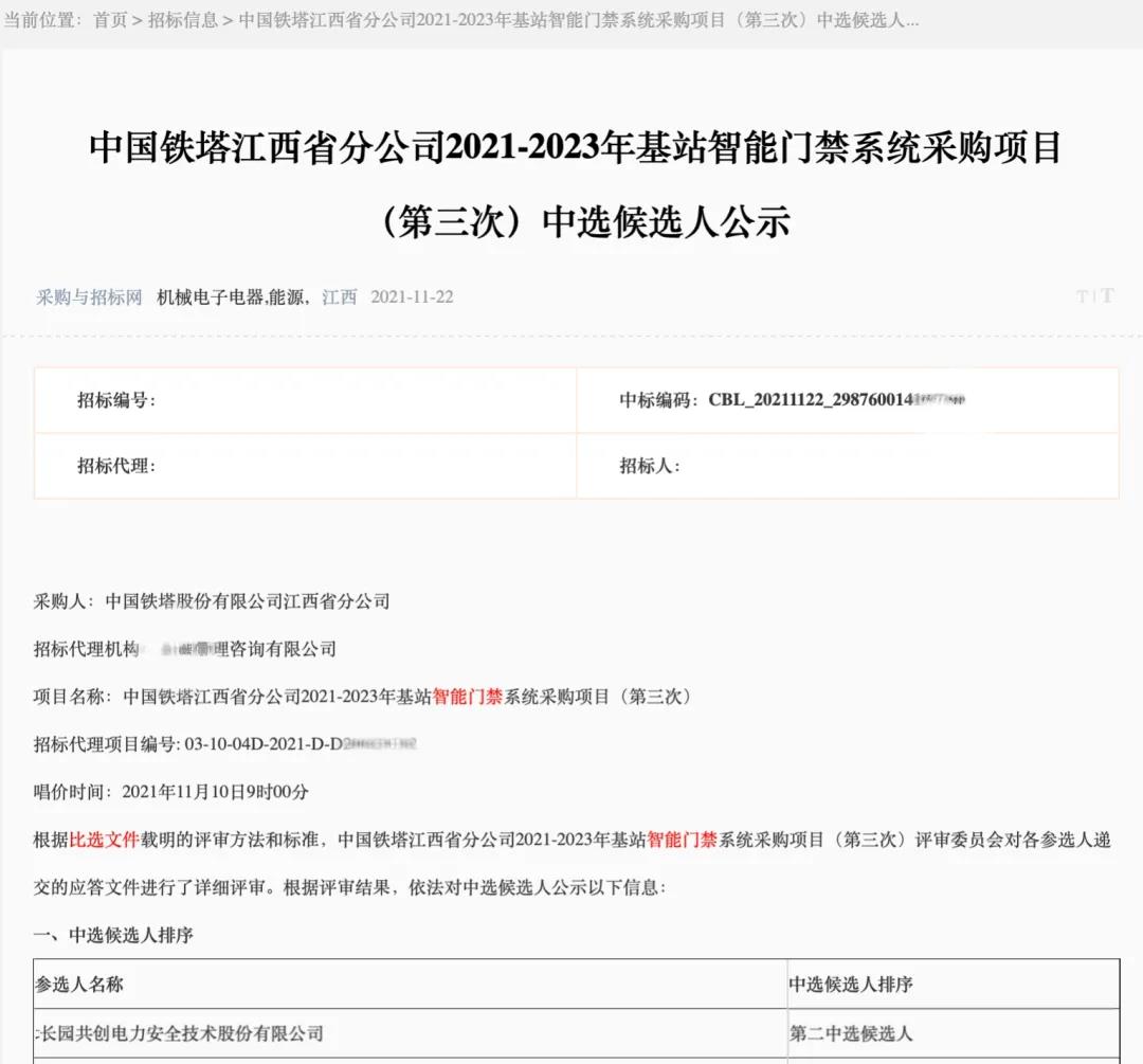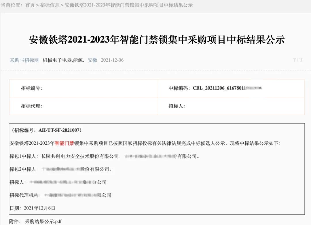新突破 | zoty中欧共创连续中标安徽、江西铁塔智能门禁锁项目